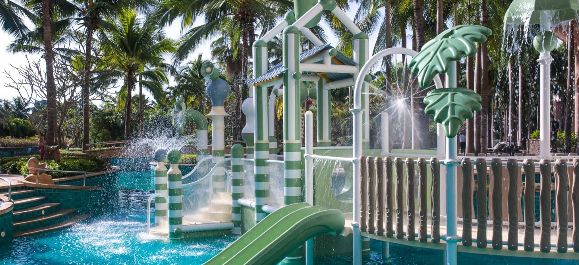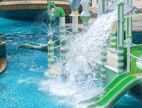 項(xiàng)目簡(jiǎn)介:三亞國(guó)光豪生水樂園項(xiàng)目,2023年1月正式開業(yè)。主要水上游樂設(shè)備有魔法球組合水寨。水寨產(chǎn)品采用了復(fù)合材料、玻璃鋼生產(chǎn),能做到永不腐蝕、永不生銹。采用溫和而有張力的莫蘭迪色系,讓空間變得更加高級(jí)雅致。球體內(nèi)部融入多種噴水裝置,別致的整體造型,集爬、鉆、滑、等多功能為一體的綜合性水上游樂設(shè)施。藝術(shù)連廊既是娛樂空間,又是交流空間,能讓場(chǎng)景更加融洽、緊密,玩水娛樂氛圍更有活力。