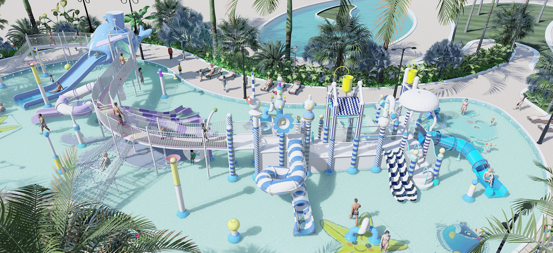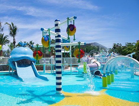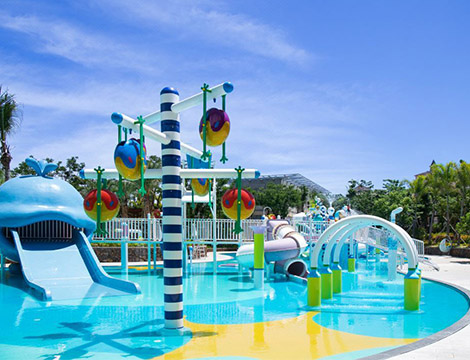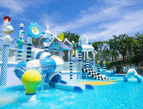 項目簡介:酒店位于海南陵水,坐擁“會唱歌的沙灘”清水灣,親子水上樂園2022年6月開業(yè),以“深?!睘殪`感設(shè)計,以藍色為主色調(diào),設(shè)備上推陳出新,利用滑梯出口設(shè)計生動形象的鯨魚雕塑,以及海洋主題鋪裝打造海洋氛圍,配備豐富多彩的海島娛樂項目,是舒暢身心及活力運動的結(jié)合,創(chuàng)造多層次的海洋體驗。