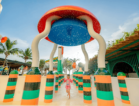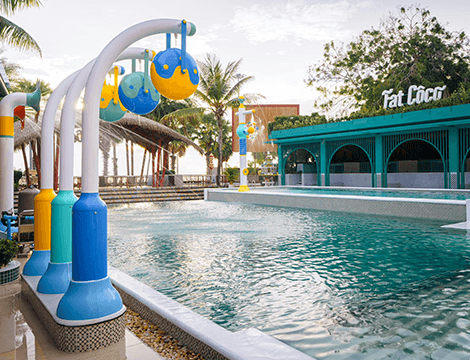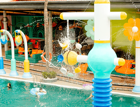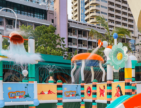 項(xiàng)目簡(jiǎn)介:FAT COCO水上樂(lè)園位于泰國(guó)芭提雅A-one The Royal Cruise Hotel酒店,占地面積470平。水上樂(lè)園結(jié)合酒店度假風(fēng)格,以酒店IP“FAT COCO”形象,設(shè)計(jì)了一款自然美學(xué)與互動(dòng)樂(lè)趣相融合的水上游樂(lè)設(shè)施。流暢的線條和鮮艷的主題色調(diào),融入“FAT COCO”的IP元素,太陽(yáng)花戲水、彎曲趣味倒水桶、彎曲小丑噴水等十幾種戲水小品設(shè)施,打造適合休閑放松、親子互動(dòng)的繽紛水寨和淺水戲水區(qū),滿足全齡段游客對(duì)水上游樂(lè)的期待。