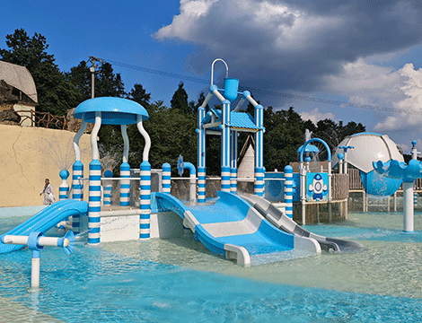 項(xiàng)目簡介:海仙谷水上樂園,位于云南曲靖,占地面積15000平米,集旅游度假、溫泉泡池、餐飲于一體水上度假樂園。以浪漫的蒂芙尼藍(lán)作為主色調(diào),飽含幸福、美滿之意,讓人沉浸在戲水的快樂中。輔以沙子的黃色,與周圍的山形成鮮明對(duì)比,體現(xiàn)出中國人寄情山水的浪漫情懷。定制沙漠綠洲主題擋板,增添了一抹童趣。根據(jù)不同年齡的需求,分了兒童歡樂區(qū)和成人游玩區(qū)。八組不同的戲水設(shè)施,刺激程度各不相同,適合全年齡段游客,水屋水寨、沖天滑梯、造浪池等,任君挑選,讓大人小孩在這里都唔那個(gè)找到屬于自己的游玩方式,享受美好的度假時(shí)光。