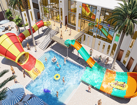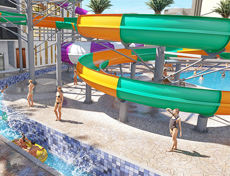 項目簡介:在阿聯(lián)酋阿治曼,Clock Tower水上樂園二期重磅升級。我們聚焦青少年與成人客群,引入12米高彩虹滑梯,還有螺旋滑梯、太空盤滑梯、雙人皮筏滑梯、中型水寨等刺激水上游樂設(shè)備,打造全齡段水上娛樂新地標。 項目以“家庭共享×分層體驗”為核心,通過多層次立體布局,將驚險滑行、離心旋轉(zhuǎn)與互動戲水完美融合,讓每位游客都能在安全環(huán)境中盡享水上狂歡。