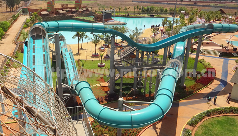curve like a roller coaster, and ultimately the same as ordinary water slide glide into the pool.