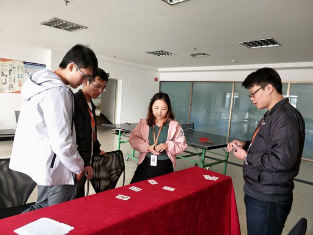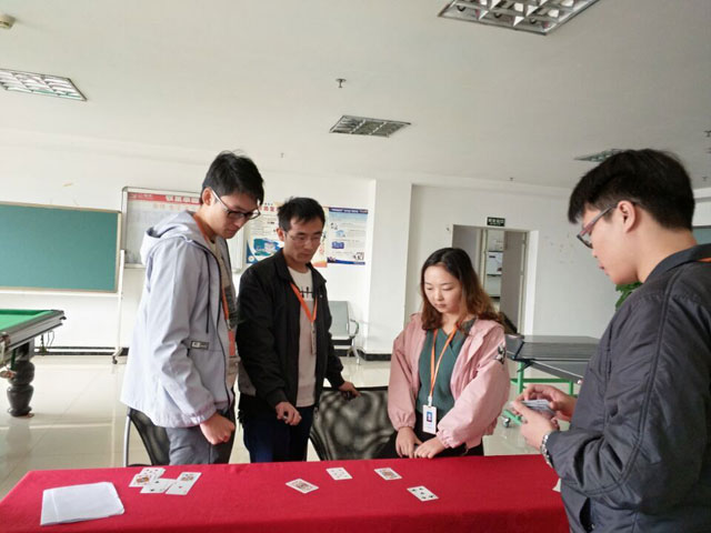 第一組的比賽一開始,何同事先聲奪人,幾秒就算出了答案,開了個(gè)好頭。慢慢的曾同事迎頭趕上,經(jīng)過半小時(shí)的比拼,最終以曾同事12張,何同事8張,張同事和田同事各4張的結(jié)果結(jié)束了本組的比賽。