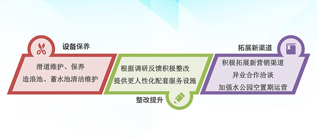 重視產(chǎn)品設(shè)施配套,除了游樂(lè)設(shè)備外,還要重視餐飲、儲(chǔ)物柜、洗手間、淋浴間、購(gòu)物商店等綜合服務(wù)的配套設(shè)施。